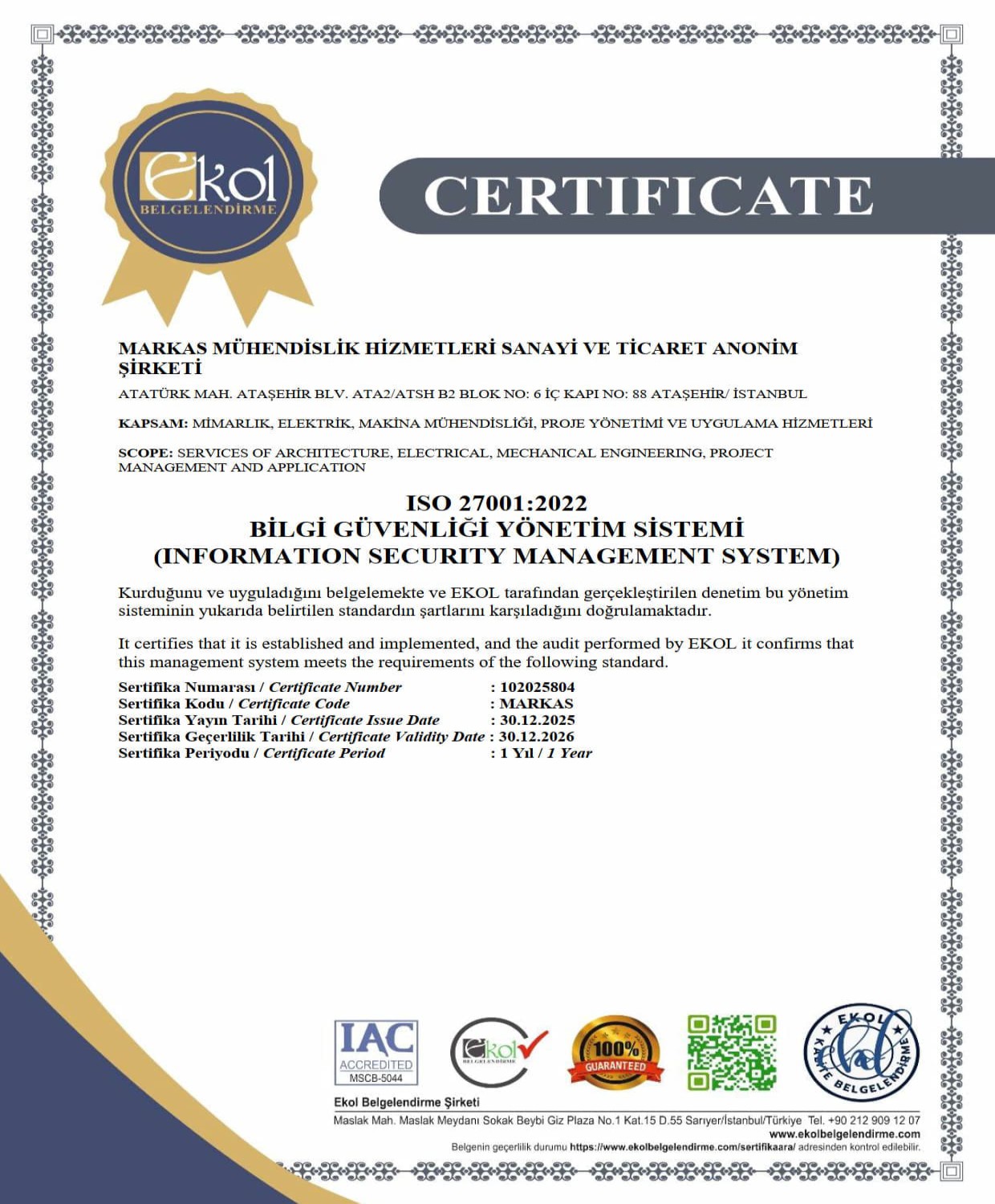 KVKK uyarınca muhatap, tedarikçi, müşteri, çalışan, stajyer, ziyaretçi vb. sıfatları ile paylaştığınız kişisel verileriniz, veri sorumlusu olarak belirlenen MARKAS MÜHENDİSLİK HİZMETLERİ SAN. VE TİC. A.Ş. tüzel kişilikleri tarafından aşağıda belirtilen kapsamda değerlendirilecektir.